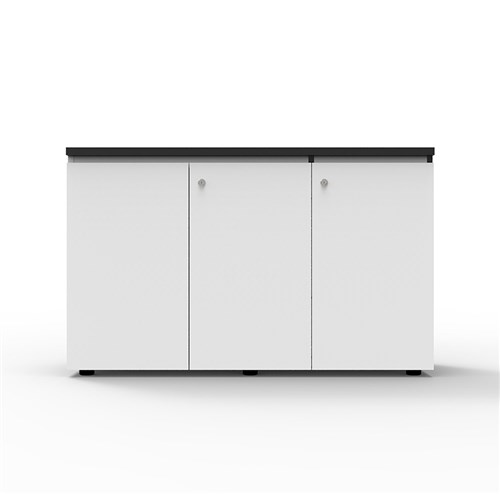 DELUXE INFINITY SWING DOOR CUPBOARD 1500Wx450Dx730mmH Natural White with Black