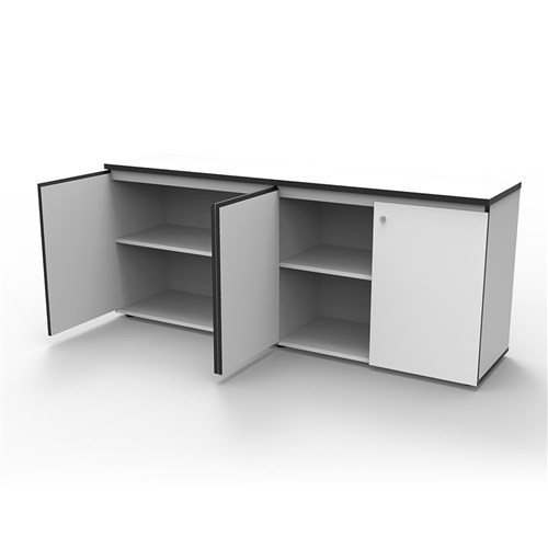 DELUXE INFINITY SWING DOOR CUPBOARD 1800Wx450Dx730mmH Natural White with Black