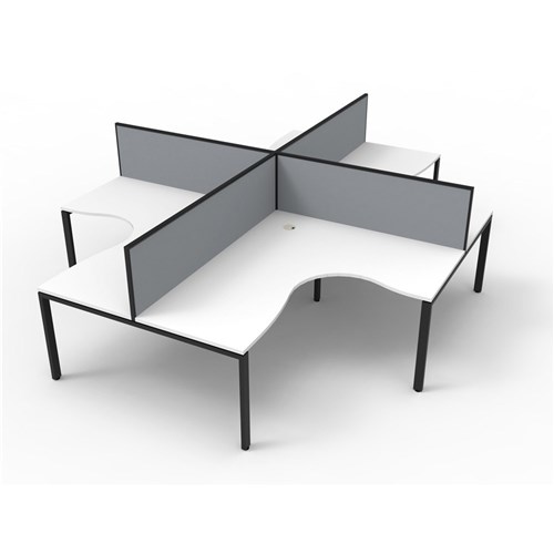 Deluxe Profile Corner Workstation 1500Wx1500Wx750D White Top Black Quad Frame