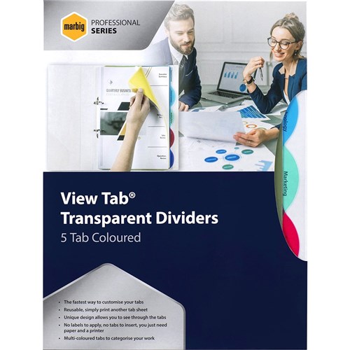 MARBIG VIEW TAB DIVIDERS A4 PP 10 Tab Xtra Wide Colour Set of 10