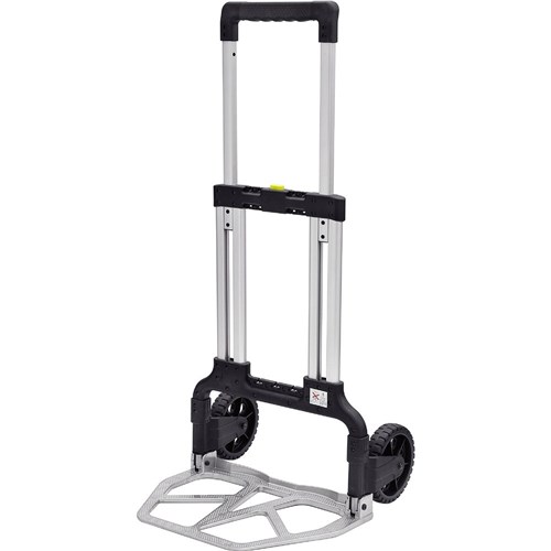 • Easy to collapse handle and wheels to make storing easier Folded Size: (L) 500Mm X (W) 60Mm (H) 730Mm Expanded Size: (L) 450Mm X (W) 500Mm (H) 990Mm Weight Capacity: 125Kg
