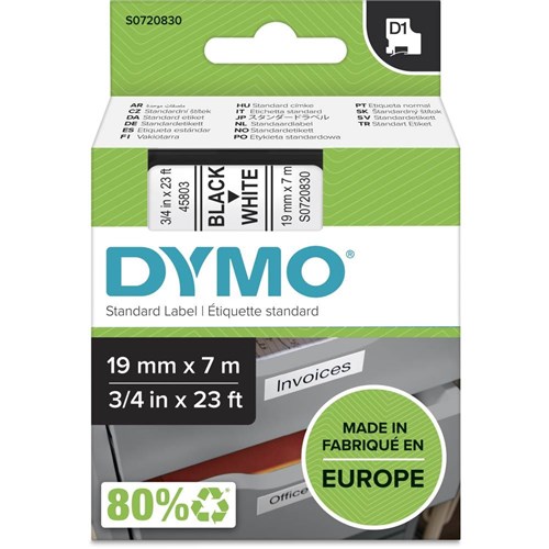 DYMO D1 19mm x 7m - BLACK ON WHITE