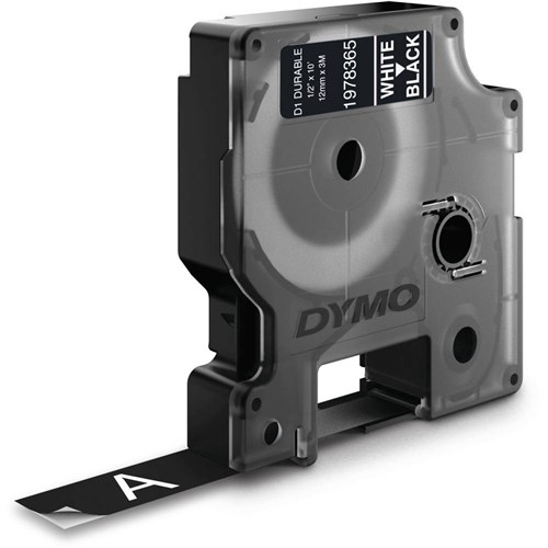 DYMO D1 DURABLE LABELLING TAPE Cassettes White on Black 12mmx3m
