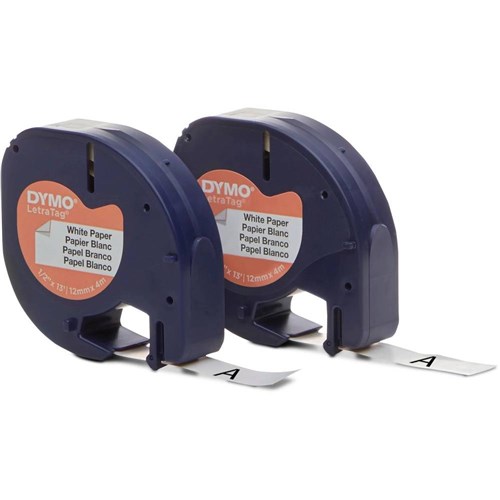 DYMO LETRATAG 12MMX4M PEARL WHITE PAPER TWIN PACK
