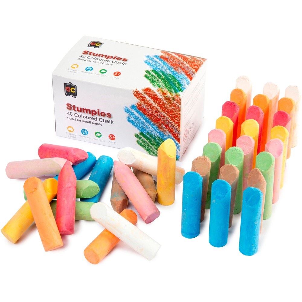 Educational Colours coloured Stumpies chalks are ideal for small hands.