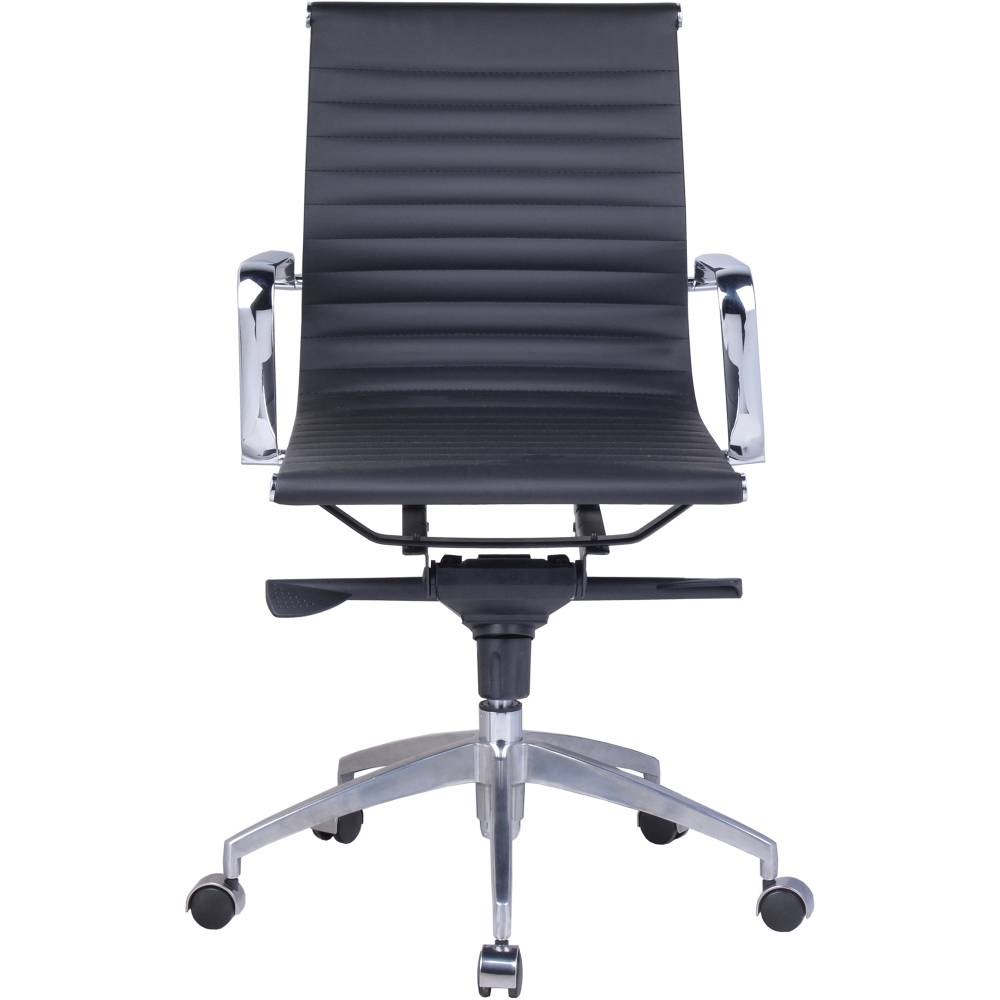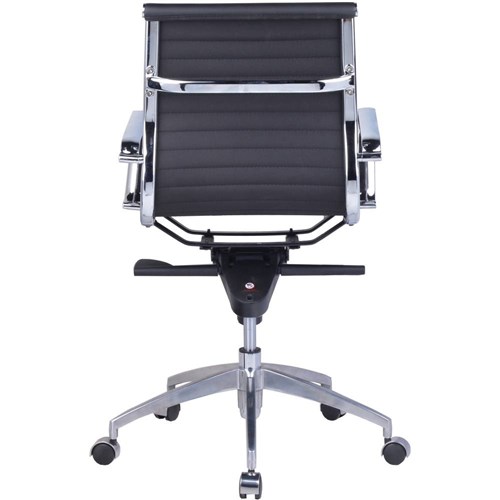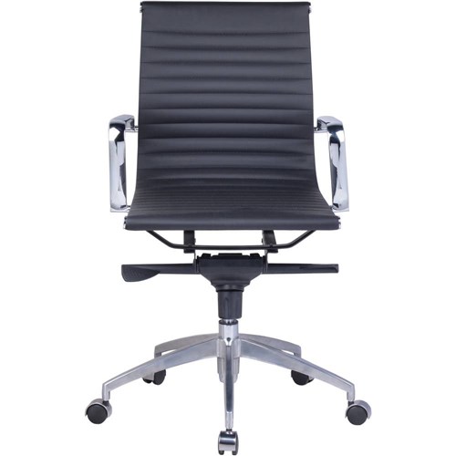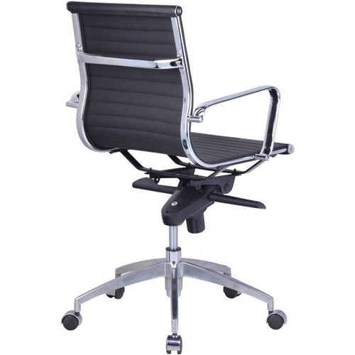 PU605M Medium Back Executive Chair Chrome Base and Arms Black Ribbed PU Seat and Back