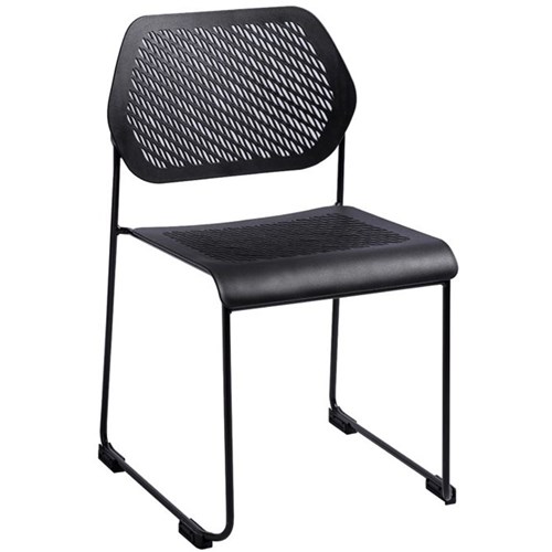 Black P/C 12.5mm solid rod sled base underframe with black perforated polypropylene back rest & seat pan.