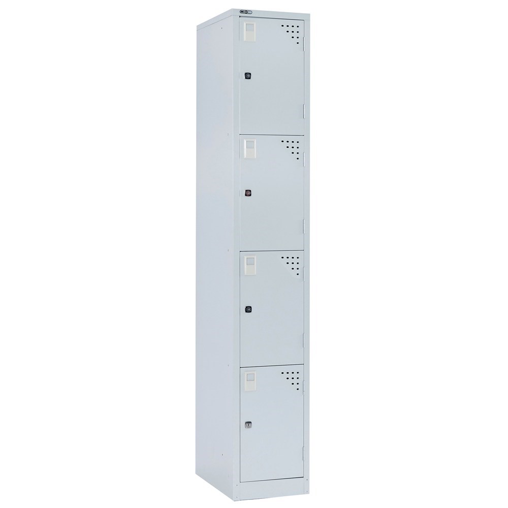Go Steel Storage Locker Four Door 1830Hx305Wx455mmD Silver Grey