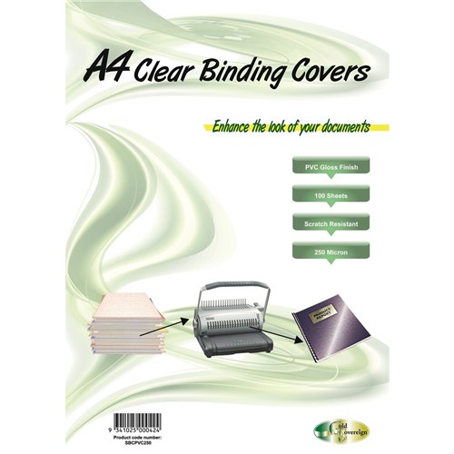 GOLD SOVEREIGN HEAVY DUTY Binding Covers 250 micron A4 Clear Pack of 100