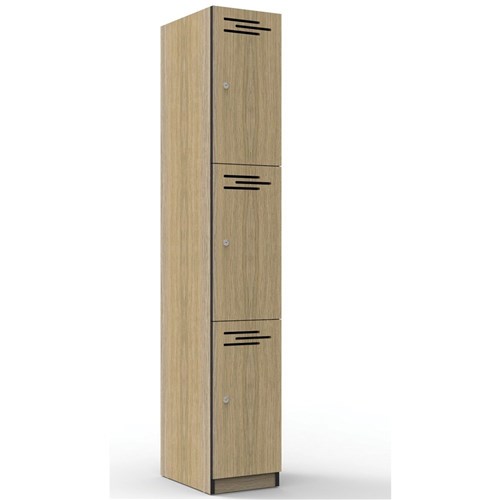RAPIDLINE MELAMINE LOCKER 3 DOOR 305Wx455Dx1850mmH Natural Oak with Black