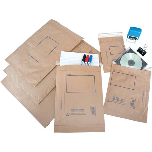 Rugged, all purpose, paper-fibre cushioned mailers.