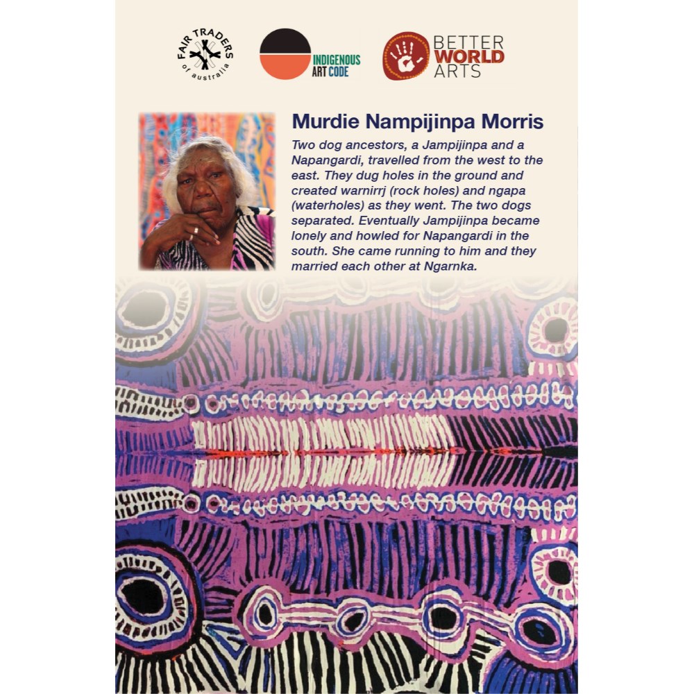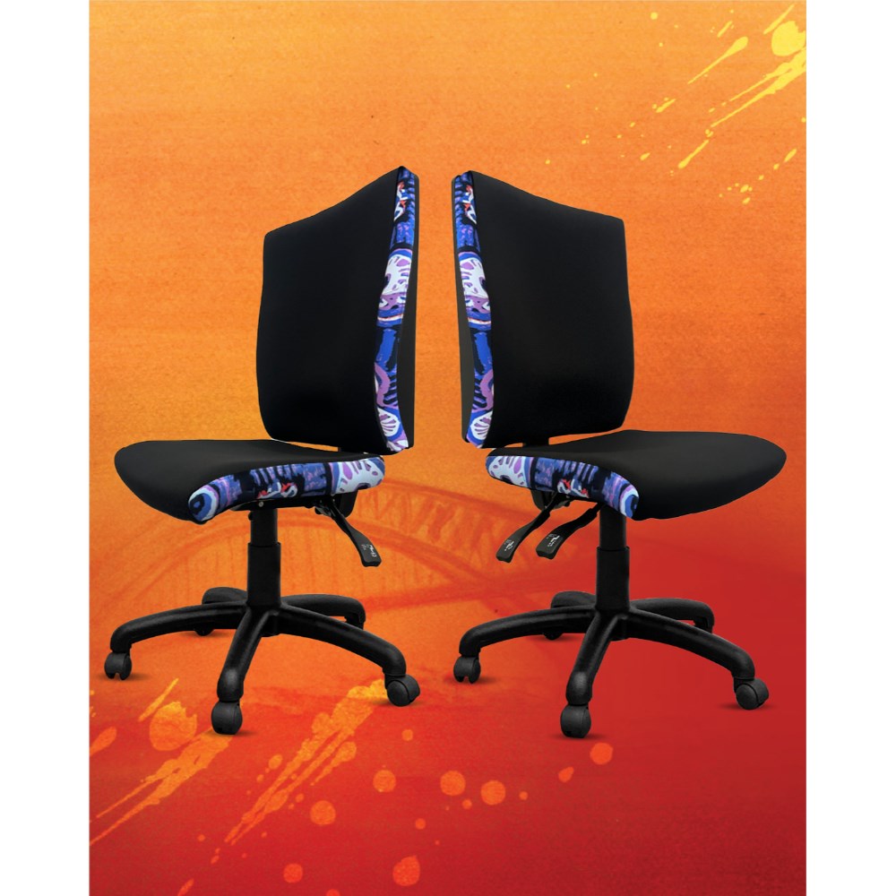A unique commercial fabrics designed by Murdie Nampijinpa Morris (Indigenous Artist) combined with K2 Black Fabric to upholster the chair.