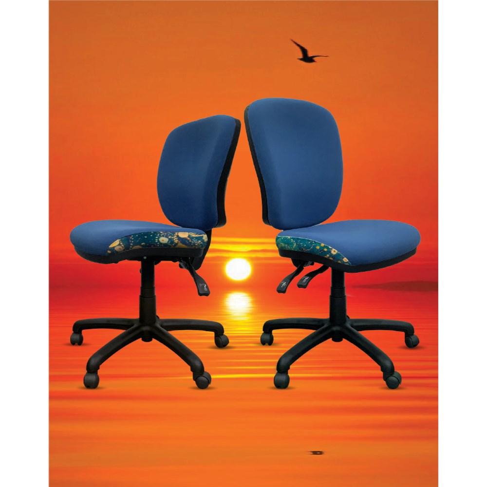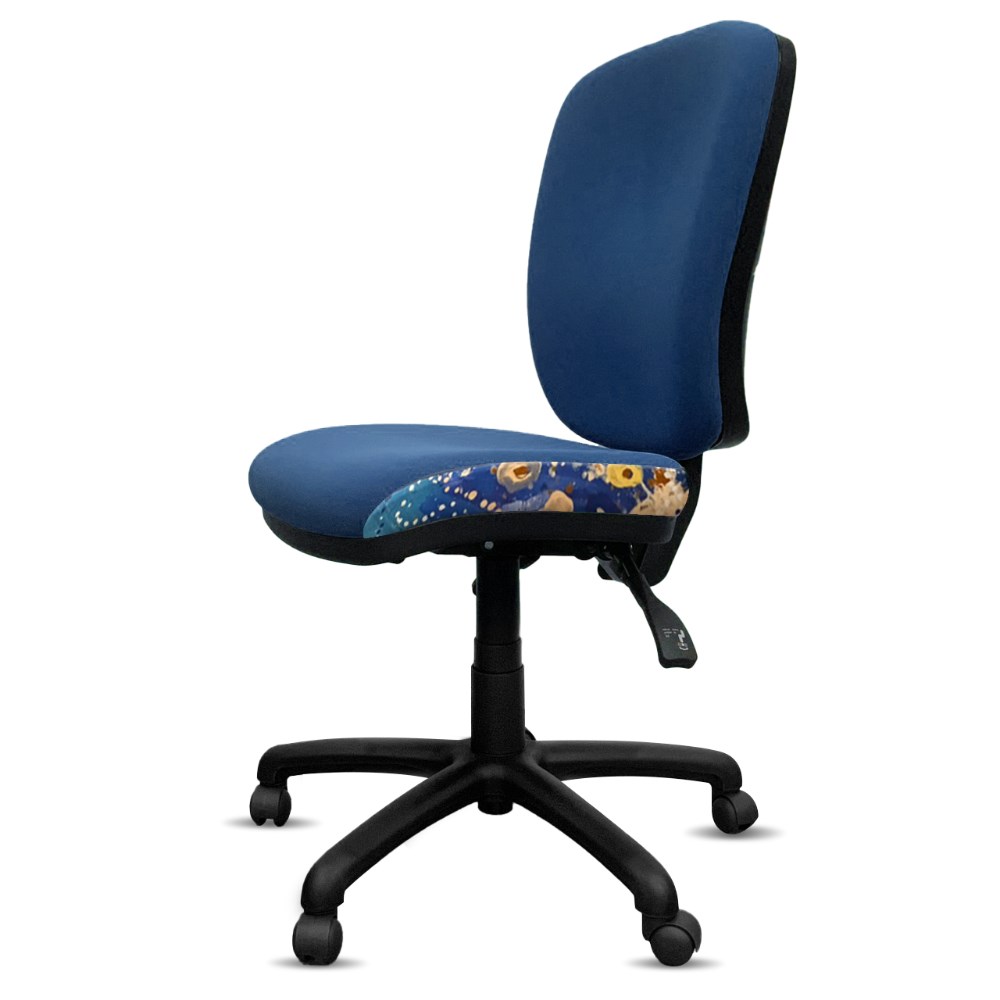 • Heavy duty commercial chair with 3 lever mechanism and ratchet back height adjustment.