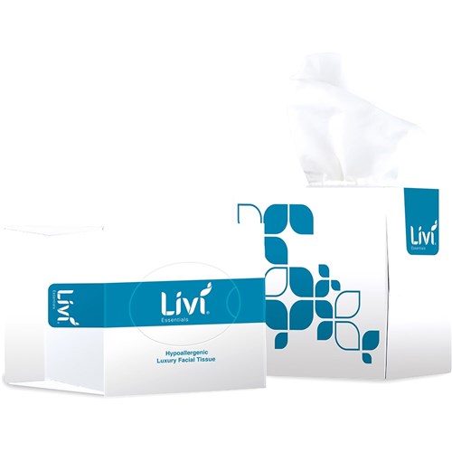 Livi Essentials Facial Tissues Cube Hypoallergenic 2 Ply 90 Sheets Ctn24