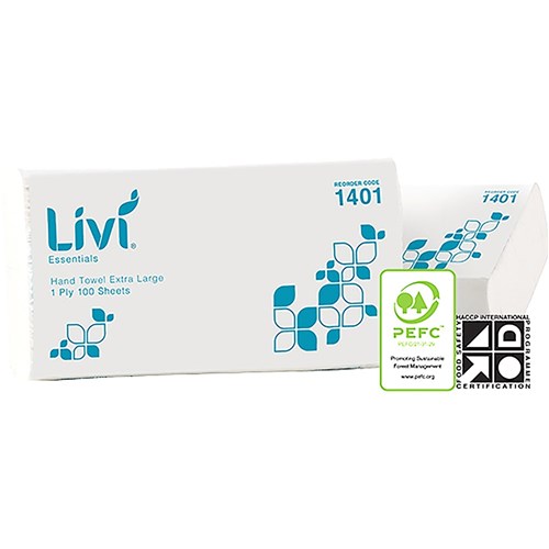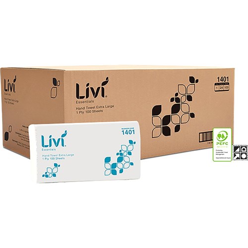 Livi Essentials Hand Towel Extra Large 1 Ply 100 Sheets Carton of 24 - 1401