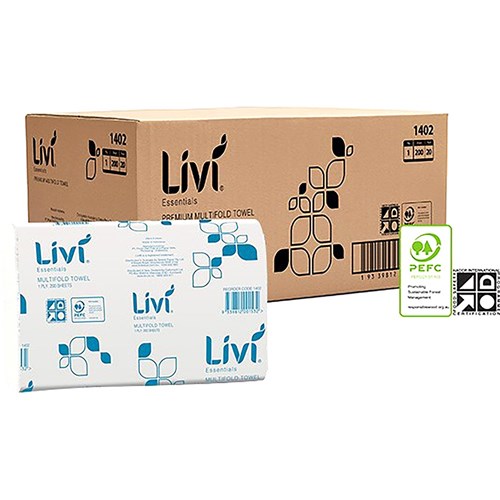 Livi Essentials Hand Towel Slimfold 1 Ply 200 Sheet Box of 20