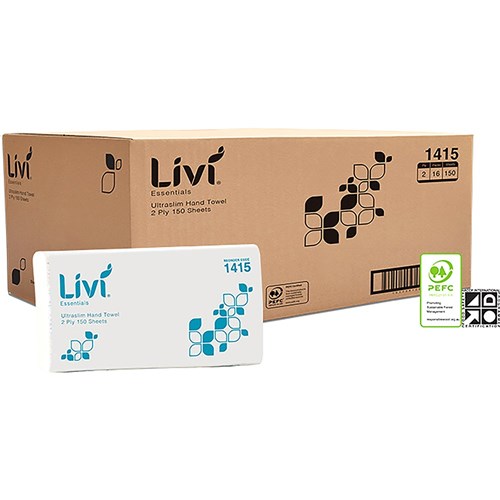 Livi Essentials Hand Towel Ultraslim 2 Ply 150 Sheet Box of 16