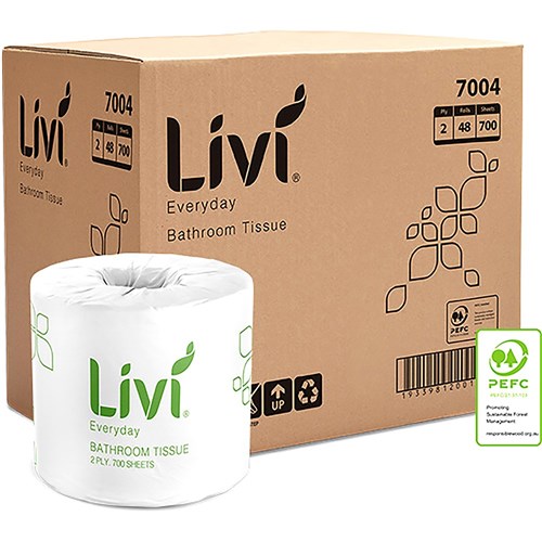 Livi Basics Toilet Paper Rolls 2 ply 700 Sheets Box of 48