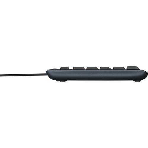 Simply plug this corded ambidextrous mouse and full-sized keyboard via USB and start working in seconds.