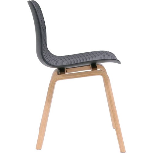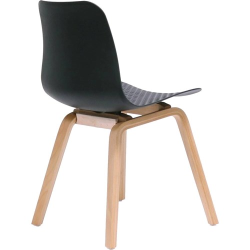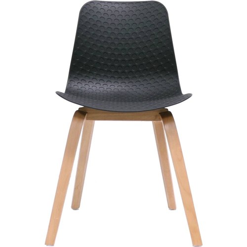 Lucid Meeting Visitor Chair Black Patterned Poly Shell Light Oak Timber 4 Leg Base