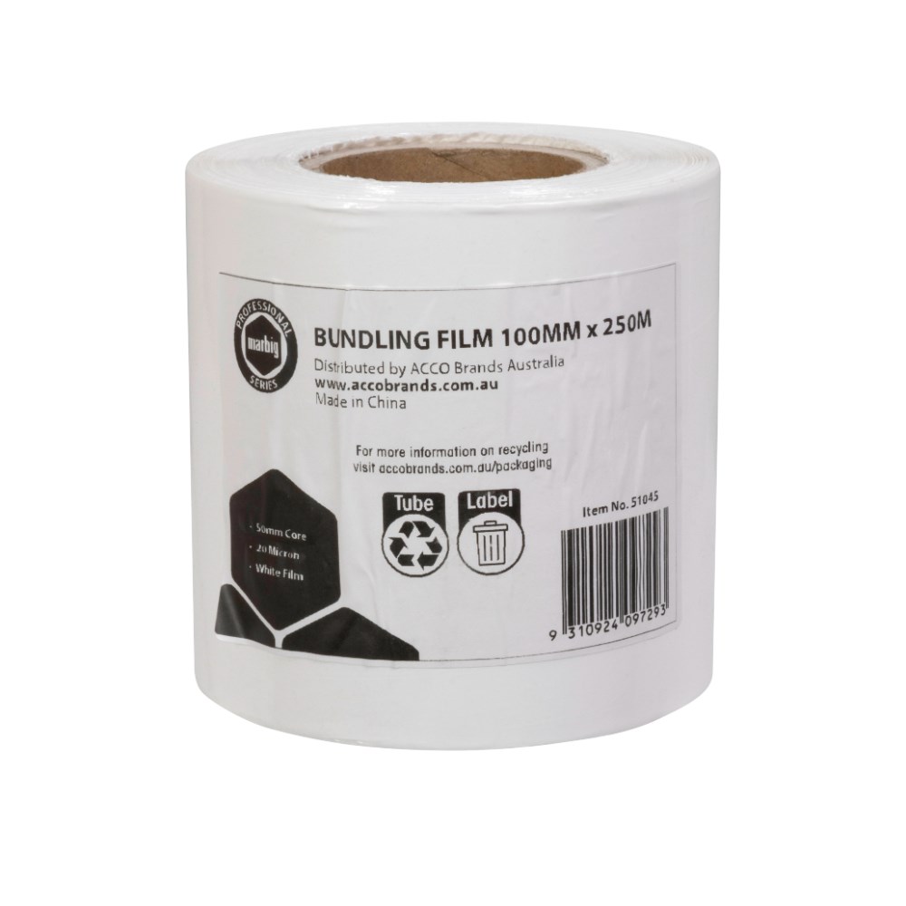 Marbig Professional Bundling Film Blown 100mm x 250m 20 Micron 2-Inch Core White