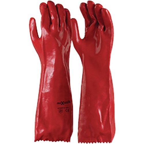 MAXISAFE CHEM RESISTANT GLOVES Chemical Resistant Glove Red PVC Single Dipped 45cm