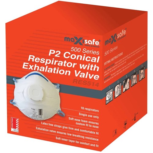 Maxisafe Conical P2 Respirator With Valve Pack of 10