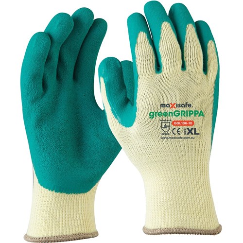 MAXISAFE GRIPPA GLOVE Knitted poly cotton, XXLarge Green latex palm