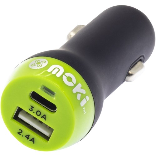 Moki Type-C and USB Car Charger Black