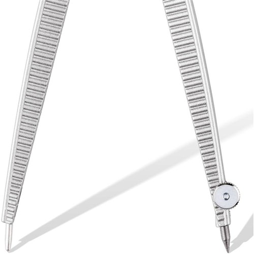 Pecision metal school compass with obtuse angled safety point.