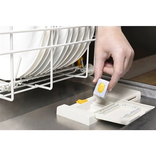 Detergent, disinfectant, rinse aid and glass protection all-in-one.