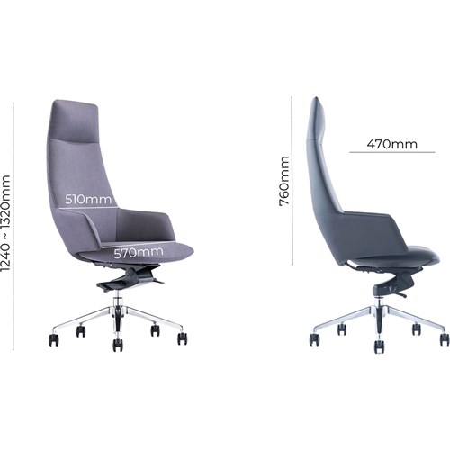 Chair Dimension: Seat Width 300-585mm, Seat Depth 470mm, Back Height: 785mm, Overall Height 1240 - 1320mm.
