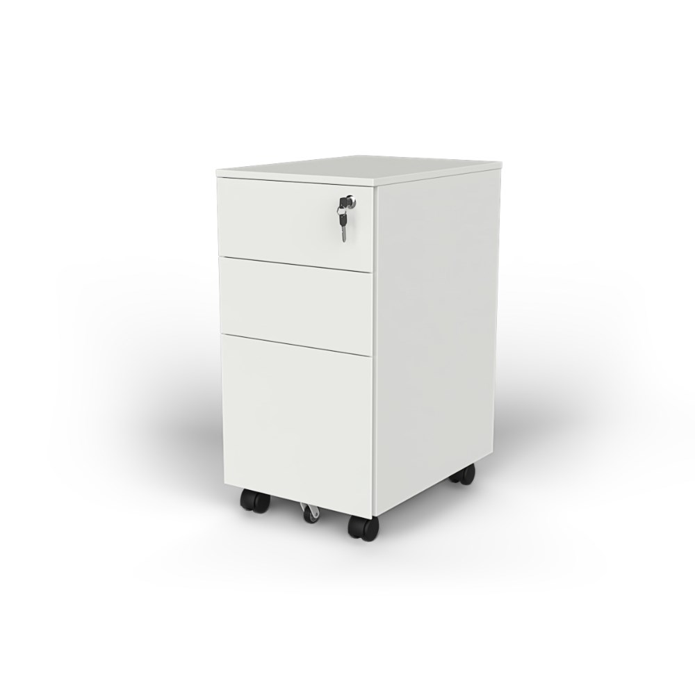 OLG Agile Slimline Mobile Pedestal 2 Drawer 1 File 300W x 450D x 600mmH White