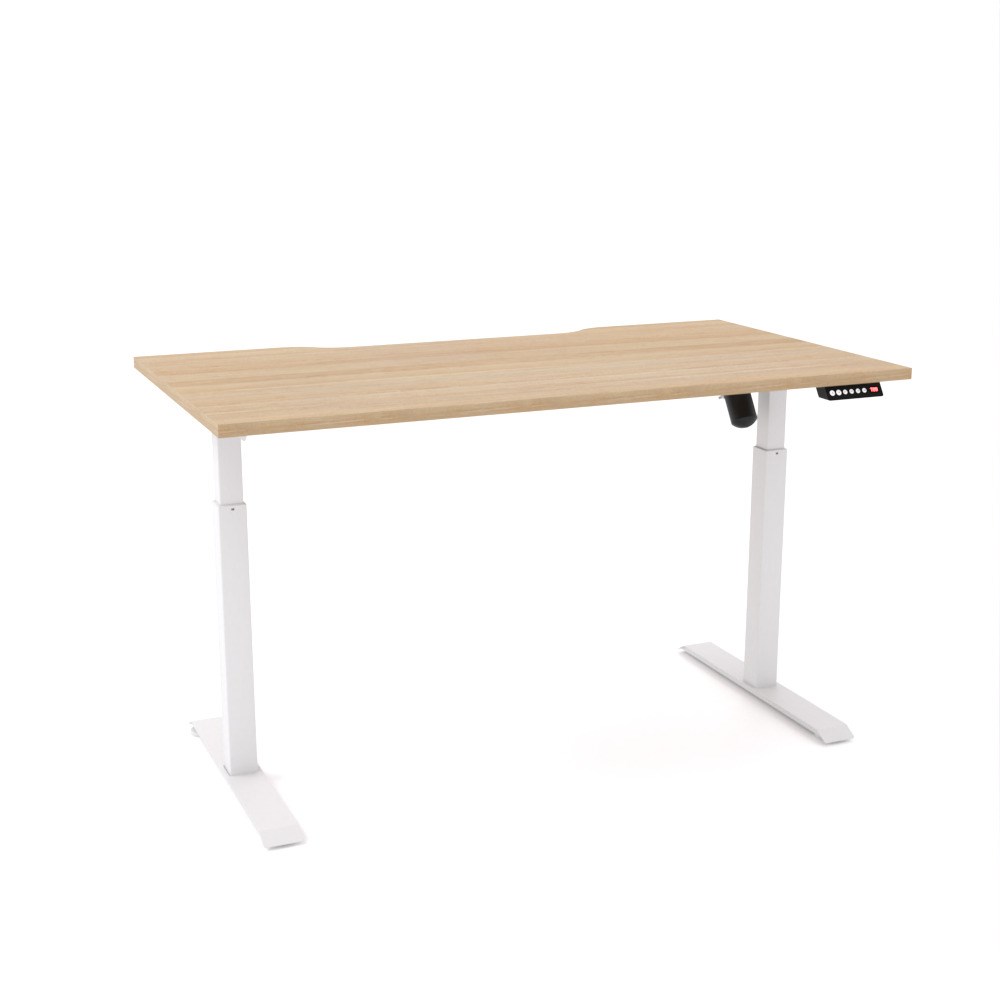 OLG Q-Stand Electric Sit-Stand Desk 1500Wx800Dx720-1200mmH New Oak Top and White Frame