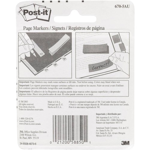 Post-It 670-5AU Page Markers Ultra 500 Asstd 13x44mm Pack of 5