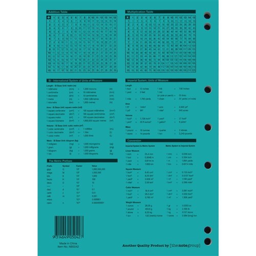 4 year calendar, activity page, maths tables & red margin.