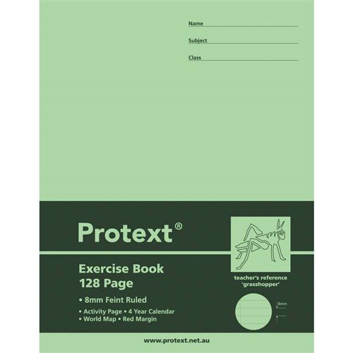 PROTEXT EXRCISE BOOK 225X175MM 8mm Ruled 128pgs Grasshopper