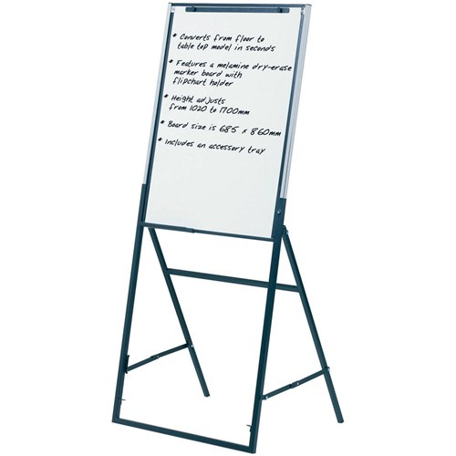 Easel height adjusts from 1020mm - 1700mm at the touch of a button but folds away for easy storage.