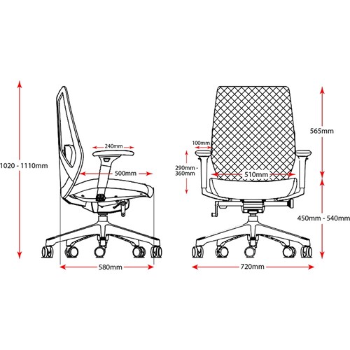 Chair Dimensions: Seat 510W x 500D x Back 450-540H x Seat 450-540mmH.