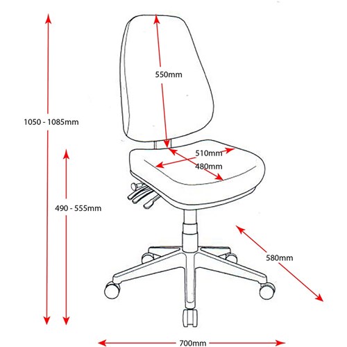Chair Dimensions: Seat 510W x 480D x Back 550H x Seat 490-555mmH.