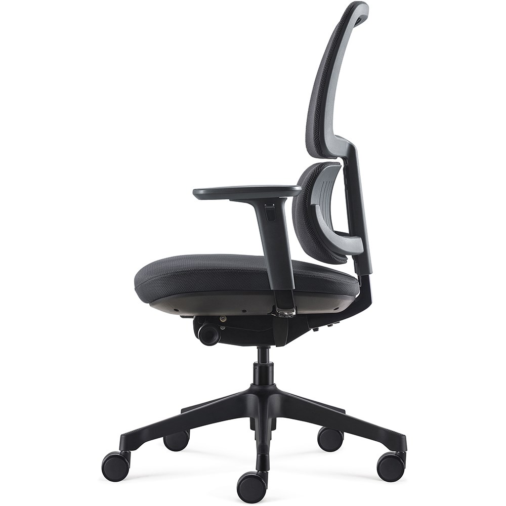 Black Korean high elastic mesh back rest and black fabric upholstered seat.