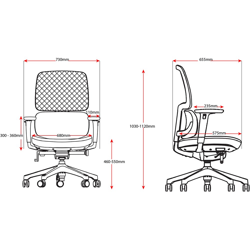 Chair Dimensions: Seat 680W x 575D x Seat 460-550mmH. Overall height: 1030-1120mmH