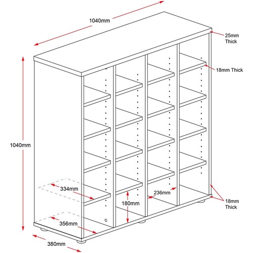 Rapid Worker Pigeon Hole Unit 1040Hx1040Wx380D 20 Sections Cherry and Ironstone