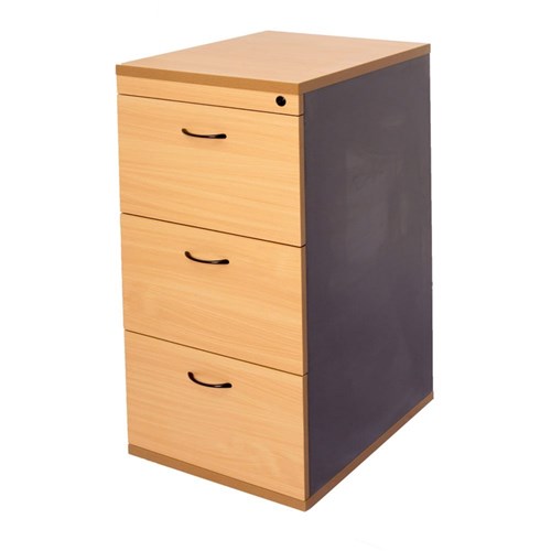 Rapid Worker 3 Drawer Filing Cabinet 990Hx465Wx600D Lockable Beech and Ironstone