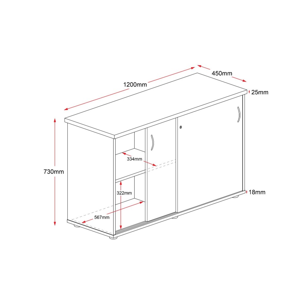 Rapid Worker Credenza Sliding Doors 730Hx1200Wx450D Cherry and Ironstone