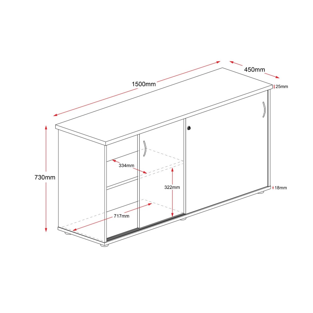 Rapid Worker Credenza Sliding Doors 730Hx1500Wx450D Cherry and Ironstone