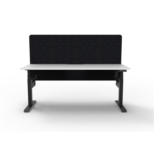 Electric height adjustable single sided workstation with Natural White top and Black Satin frame, Black Eco screen.