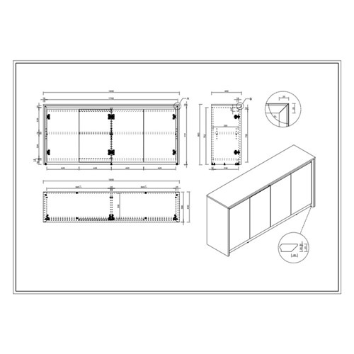 Offers ample storage space with its four swing doors and adjustable shelves.