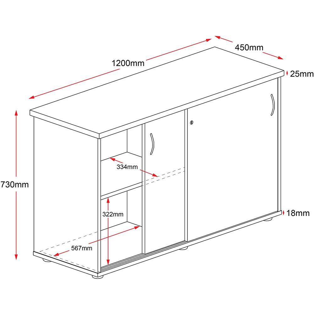 Rapid Worker Credenza Sliding Doors 730Hx1200Wx450D Cherry and Ironstone