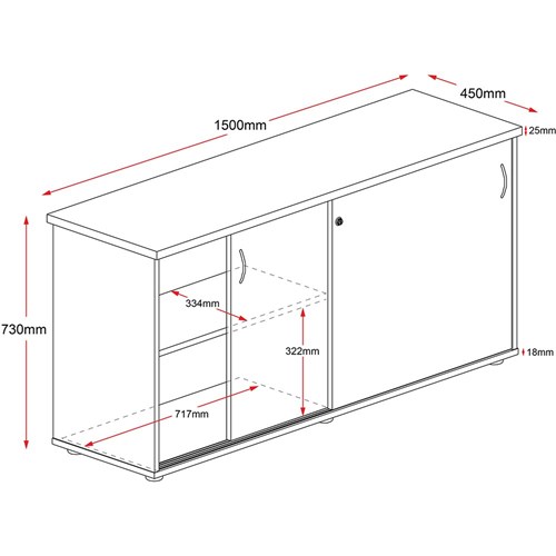 Rapid Worker Credenza Sliding Doors 730Hx1500Wx450D Cherry and Ironstone